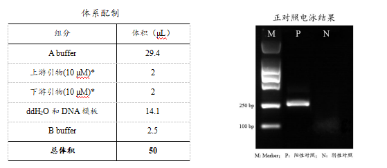 *正對照反應單元體系配制:正對照模板加入2μL,加入4 μL正對照引物Mix(包含上/下游引物),其他組分參照體系配制。
