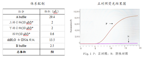 *正對照反應單元體系配制:正對照模板加入2μL,加入4.6 μL正對照引物探針Mix(已包含探針和上/下游引物),其他組分參照體系配制。