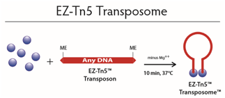 Figure 1. An EZ-Tn5 Transposome is the stable complex formed by EZ-Tn5 Transposon with EZTn5 Transposase in the absence of MG2+.