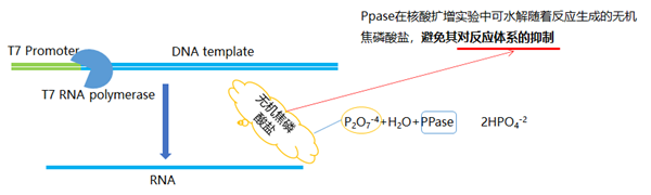 無(wú)機焦磷酸酶(Pyrophosphatase, Inorganic)可催化無(wú)機焦磷酸鹽水解生成正磷酸鹽P2O74-+H2O+PPase→2HPO42-,一方面可去除無(wú)機焦磷酸鹽對反應體系的抑制,另一方面為反應提供熱力學(xué)動(dòng)力,促進(jìn)產(chǎn)物的生成。常用于RNA、DNA、蛋白質(zhì)的生物合成中,是一種良好的輔劑,在mRNA疫苗體外大規模合成中加入可顯著(zhù)提高產(chǎn)量。