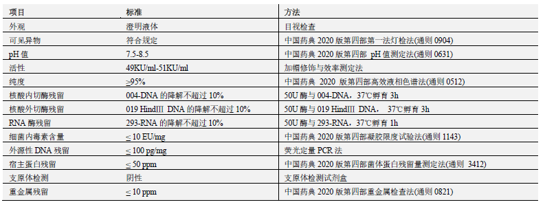 本制品利用大腸桿菌大規模發(fā)酵表達,采用藥用規格原輔料生產(chǎn),并嚴格控制宿主蛋白質(zhì)殘留、核酸殘留等,符合 GMP 規范的產(chǎn)品生產(chǎn)與質(zhì)量管理規程保障生產(chǎn)過(guò)程及所有原輔料可追溯。