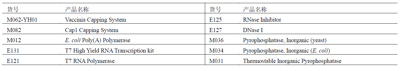 本體系可用于 IVT RNA 的加帽反應,使加帽反應在 1h 之內完成,效率接近 100%。IVT 推薦使用近岸蛋白質(zhì) T7 High Yield RNA Transcription kit(貨號:E131)。