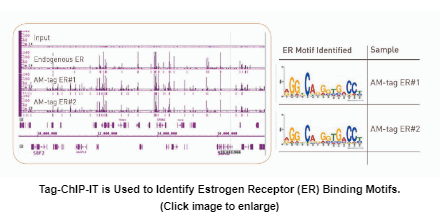 使用pAM_1C空載體克隆感興趣的蛋白質(zhì),或將AM-tag序列添加到選擇的表達載體上。在轉染和表達標記蛋白后,標簽芯片- it試劑盒可用于分離染色質(zhì),并使用針對am -標簽的抗體進(jìn)行免疫沉淀。Tag-ChIP-IT方法在qPCR和ChIP-Seq分析中產(chǎn)生了高度可重復性的結果。