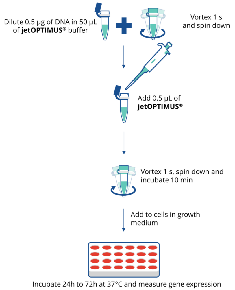 圖jetOPTIMUS的簡(jiǎn)單性?DNA轉染方案,在24孔板中。