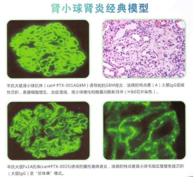 2)生產(chǎn)和銷(xiāo)售綿羊抗體以誘導抗腎小球基底膜(抗GBM)腎小球腎炎,膜性(抗Fx1A)腎病和系膜增生性(抗Thy1)腎小球腎炎