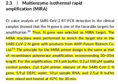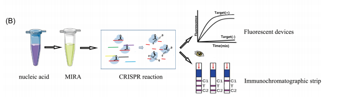 將核酸擴增與CRISPR結合,是當下一種新型核酸檢測方法。已有多位科研老師將MIRA技術(shù)與CRISPR技術(shù)做結合,在檢測SARS-CoV-2病毒時(shí),顯示出優(yōu)異的靈敏度、特異性,尤其在檢測的高效和便捷方面,顯著(zhù)優(yōu)于其他技術(shù),為實(shí)現快速POCT提供了解決方案!