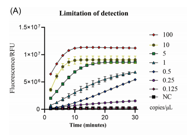 實(shí)驗成功開(kāi)發(fā)了一種基于恒溫擴增(安普未來(lái)恒溫擴增試劑)和CRISPR相結合一步法熒光檢測(SARS-CoV-2)的方法,檢測時(shí)間小于20 分鐘,靈敏度與RT-qPCR一致且特異性強。該方法快速、靈敏和便于操作。