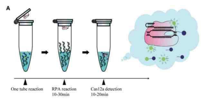 圖2:RPA聯(lián)合CRISPR-Cas12a檢測體系的實(shí)現1個(gè)拷貝的最低檢測限