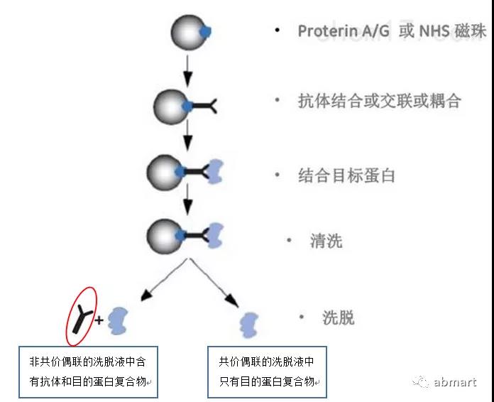 1) Co-IP抗體共價(jià)偶聯(lián)到磁珠或者Agarose上——這樣在洗脫的時(shí)候,抗體就不會(huì )被洗到CoIP產(chǎn)物中去。