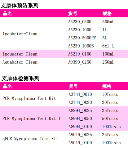 注:Myco-3停用2周后方可進(jìn)行支原體檢測。