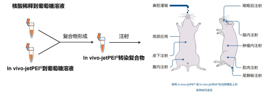 in vivo-jetPEI?使用便捷,和體外轉染類(lèi)似,核酸和in vivo-jetPEI?混合后,直接注射到動(dòng)物體內(Fig. 2)。