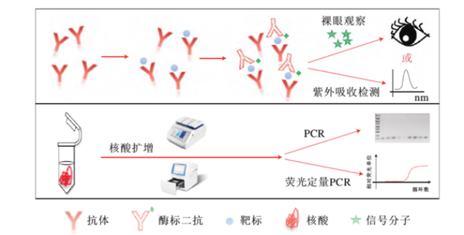 基于細胞培養的方法盡管一直以來(lái)被認為是食源性致病菌檢測的金標準,但該方法需要經(jīng)過(guò)增菌、選擇性培養、純化、生化反應鑒定等步驟[2],存在過(guò)程繁瑣,且檢測耗時(shí)長(cháng)等問(wèn)題,難以滿(mǎn)足目前的快速檢測需求。而基于抗原抗體特異性結合反應原理的檢測方法雖然操作相對簡(jiǎn)單,但靈敏性不足、容易造成漏檢。因此,開(kāi)發(fā)新型快速高效的食源性致病菌檢測技術(shù)是亟待解決的重要問(wèn)題。