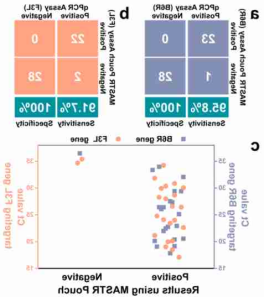 研究人員還使用MASTR袋測試了各種類(lèi)型的模擬臨床標本,結果表明MASTR袋擁有與qPCR實(shí)驗室測試相當的特異性與靈敏度,證明了MASTR袋檢測猴痘病毒的準確性(圖4)。