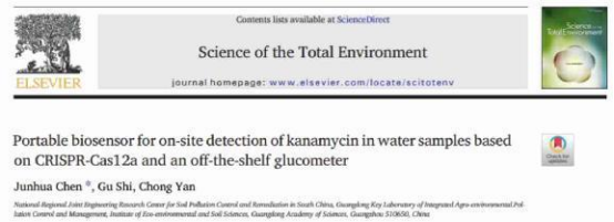 [1].Chen J, Shi G, Yan C. Portable biosensor for on-site detection of kanamycin in water samples based on CRISPR-Cas12a and an off-the-shelf glucometer. Sci Total Environ. 2023 May 10;872:162279. doi: 10.1016/j.scitotenv.2023.162279. Epub 2023 Feb 16. PMID: 36801336.