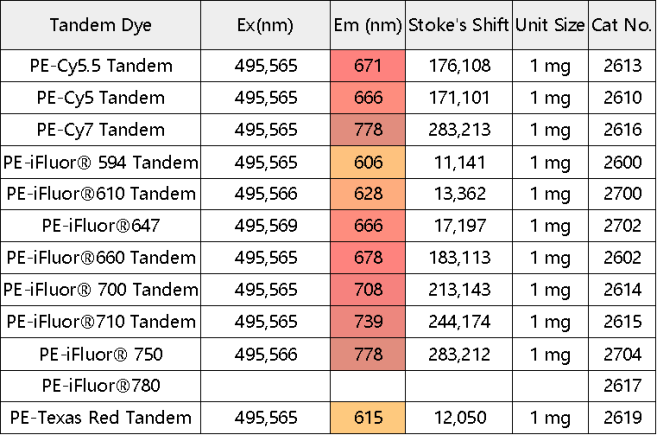 AAT提供多種PE和PE串聯(lián)染料: