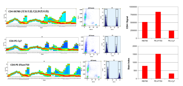 偶聯(lián)物:CD4-XX780(流式抗體供應商A),CD4-PE-Cy7(流式抗體供應商B),CD4-PE-iFluor750(AAT)
