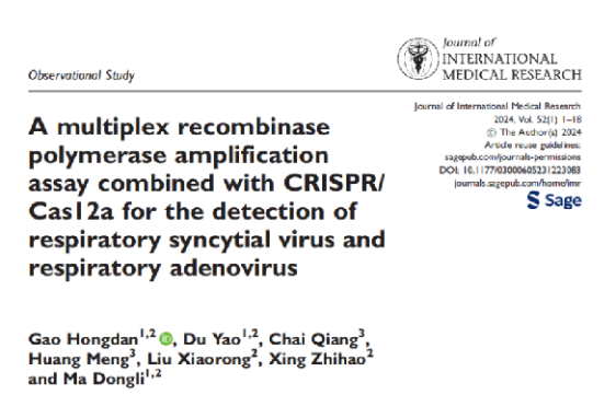 急性呼吸道感染是兒童常見(jiàn)的呼吸道疾病,通常由病毒引起。呼吸道合胞病毒(RSV)和呼吸道腺病毒(ADV)是引起兒童急性呼吸道感染的兩種常見(jiàn)病原體。輕度者可引起常見(jiàn)的感冒癥狀,如咳嗽和流鼻涕,而嚴重者可出現嚴重的并發(fā)癥,如肺炎和中耳炎。根據世界衛生組織的建議,病原體的檢測需要具備快速、準確、敏感、特異性的特點(diǎn),不應依賴(lài)專(zhuān)門(mén)的技術(shù)人員或大型儀器。因此,開(kāi)發(fā)一種能夠滿(mǎn)足上述檢測要求的RSV和ADV的檢測方法尤為重要。深圳兒童醫院兒科研究所的馬東禮主任課題組在《Scientific Reports》期刊上發(fā)表文章《A multiplex recombinase polymerase amplification assay combined with CRISPR/ Cas12a for the detection of respiratory syncytial virus and respiratory adenovirus》,影響因子4.6。