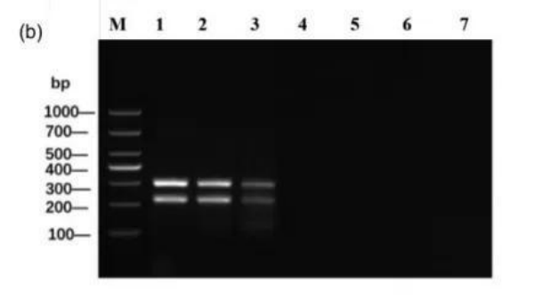 (1-6:107至102稀釋質(zhì)粒DNA;7:陰性對照)