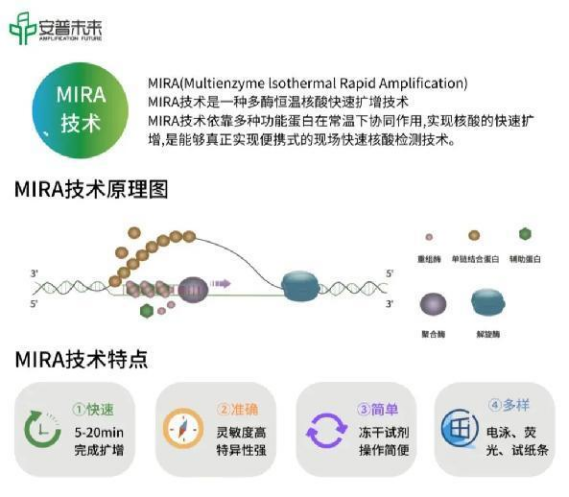 并且安普未來(lái)生物以MIRA為核心平臺技術(shù)研發(fā)出“超快速核酸釋放技術(shù)”、“雙通道恒溫熒光檢測儀”、“自測型核酸檢測裝置”等一系列配套產(chǎn)品,打造快速分子檢測整體解決方案。