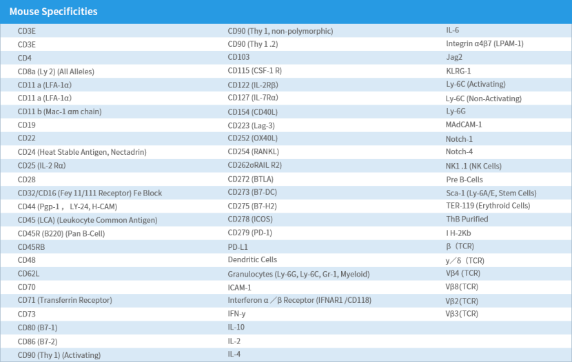 Leinco Technologies通過(guò)其特有的制備工藝,生產(chǎn)具有業(yè)內最高純度標準的體內功能級抗體。其In vivo PLATINUM™級功能抗體對于純度、內毒素、聚集體和浸出Protein A水平都有最為嚴格的質(zhì)控標準;此外,In vivo PLATINUM™級抗體均不含病原體,通過(guò)了IDEXX Impact I PCR小鼠病原體譜檢測。以其嚴格的質(zhì)控標準、優(yōu)異的產(chǎn)品性能,Leinco的抗體類(lèi)產(chǎn)品得到了科研領(lǐng)域及工業(yè)領(lǐng)域的廣泛認可,已有大量引用文獻可以參考。